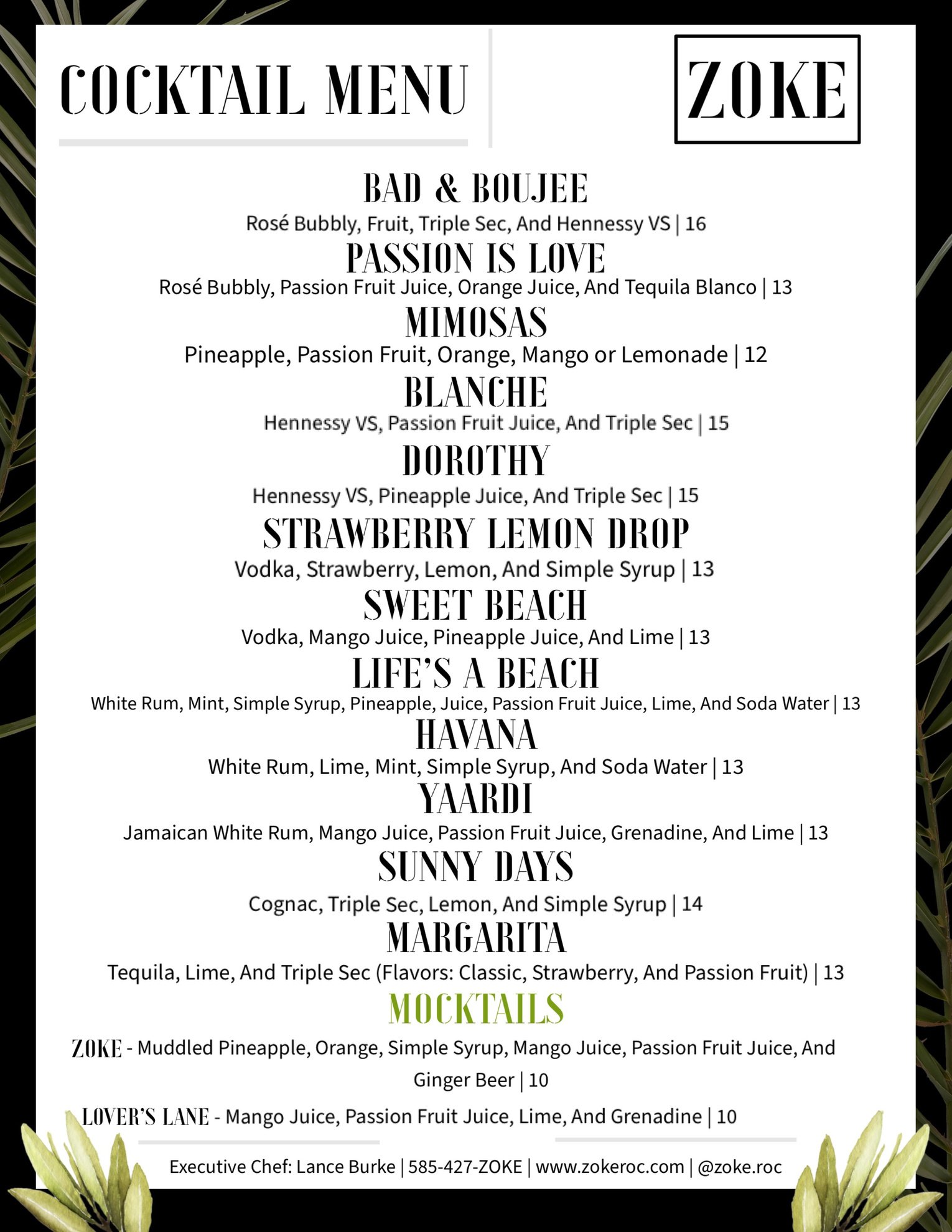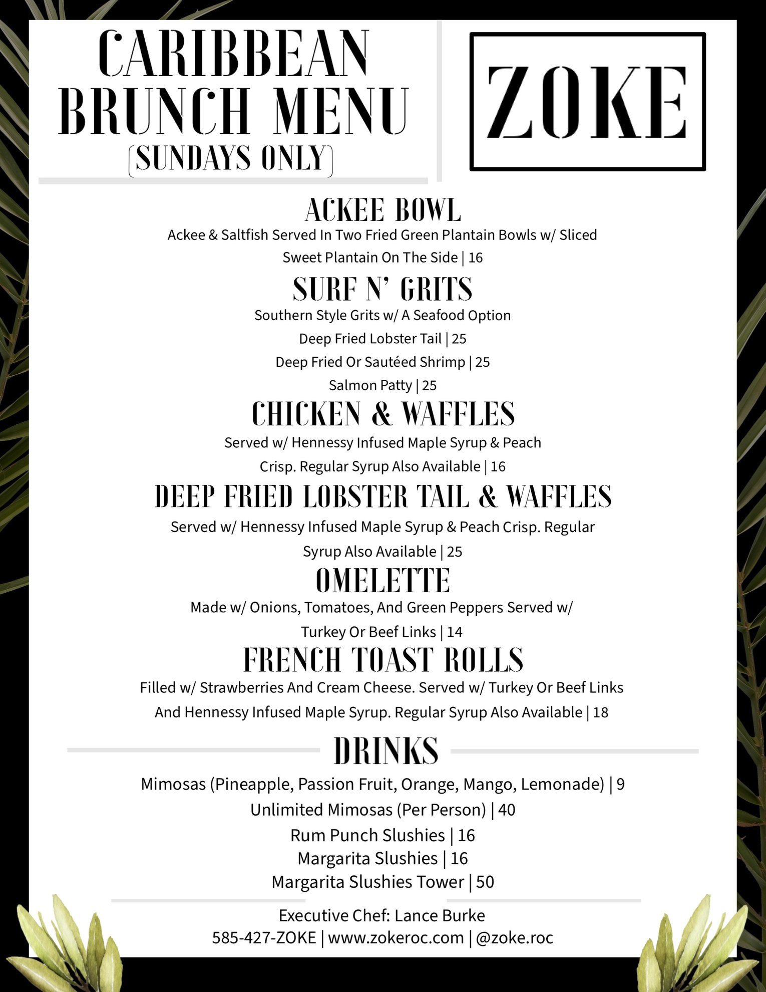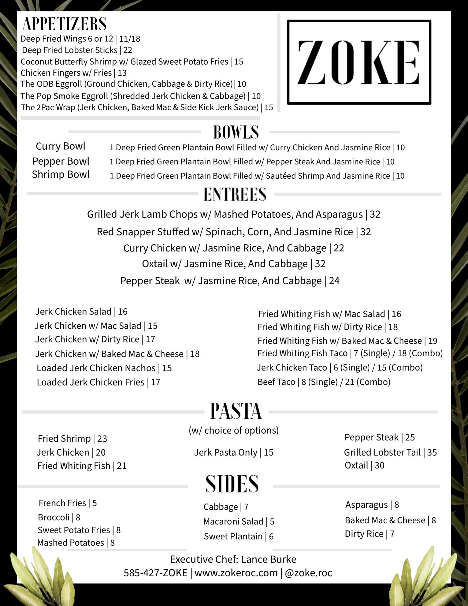 Zoke offers a unique dining experience with a fusion of Caribbean and other international cuisines, a full bar with Premium Cocktails and a lounge area for customers to socialize.